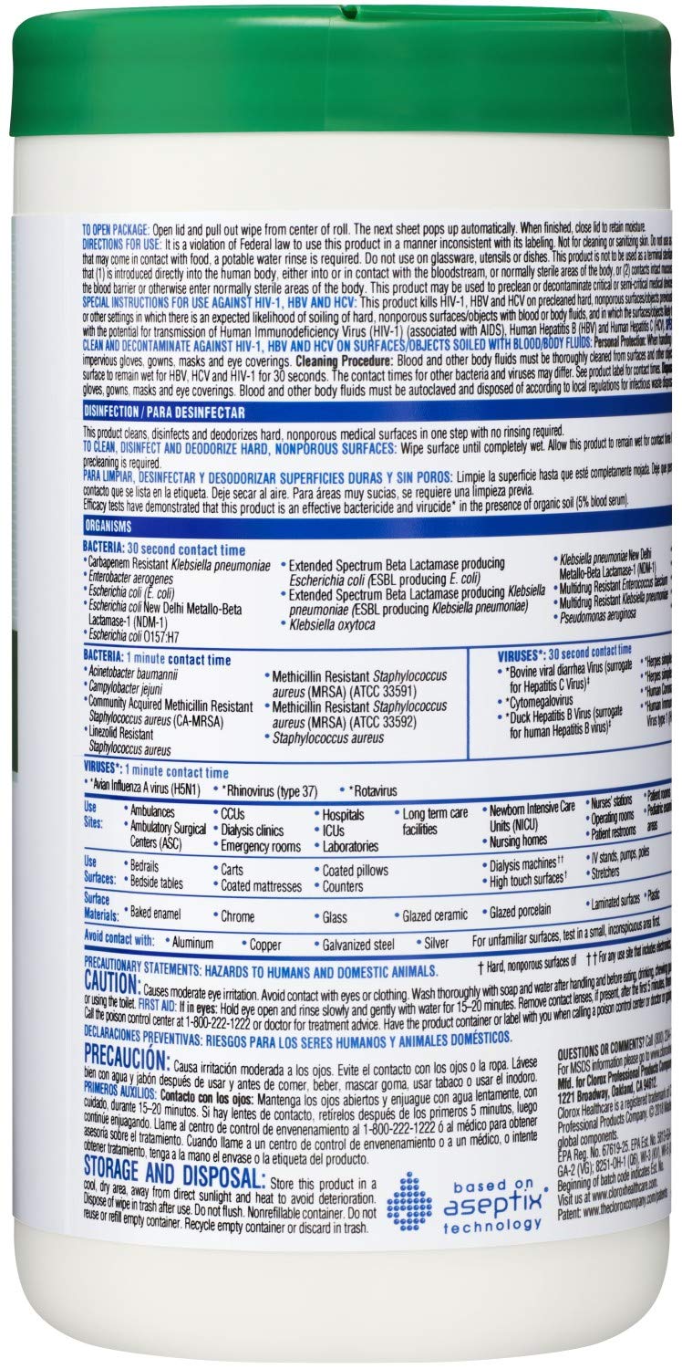 Clorox Healthcare Hydrogen Peroxide Cleaner Disinfectant Wipes, 6.75" x 9", 95 Count (Package May Vary)