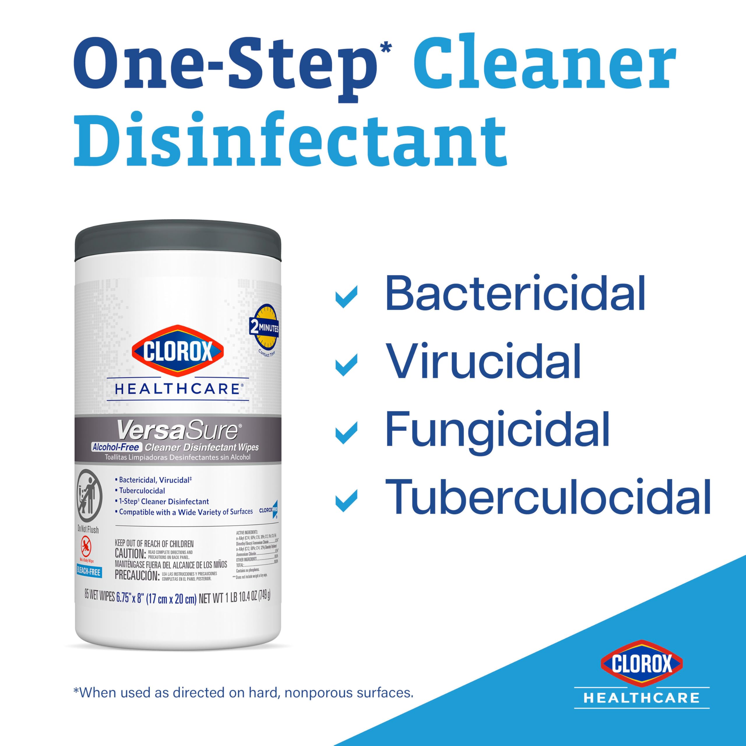 - BROAD SPECTRUM DISINFECTION: Kill over 40 pathogens* on a broad range of surfaces with these versatile Clorox Healthcare VersaSure Cleaner Disinfectant Wipes
